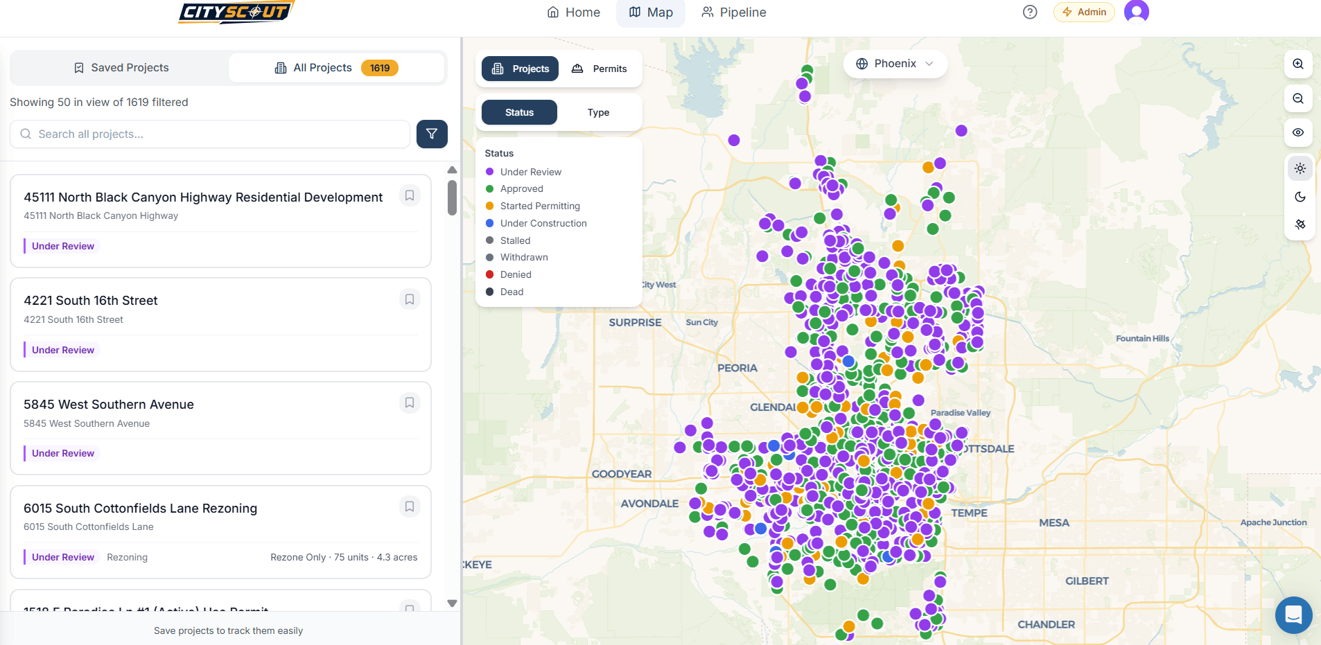 CityScout interface showing Phoenix’s data coverage map.